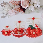 白いフレームに金と赤を基調とした立体的な水引細工をあしらい、お部屋に飾るだけで空間が明るく晴れやかに。
