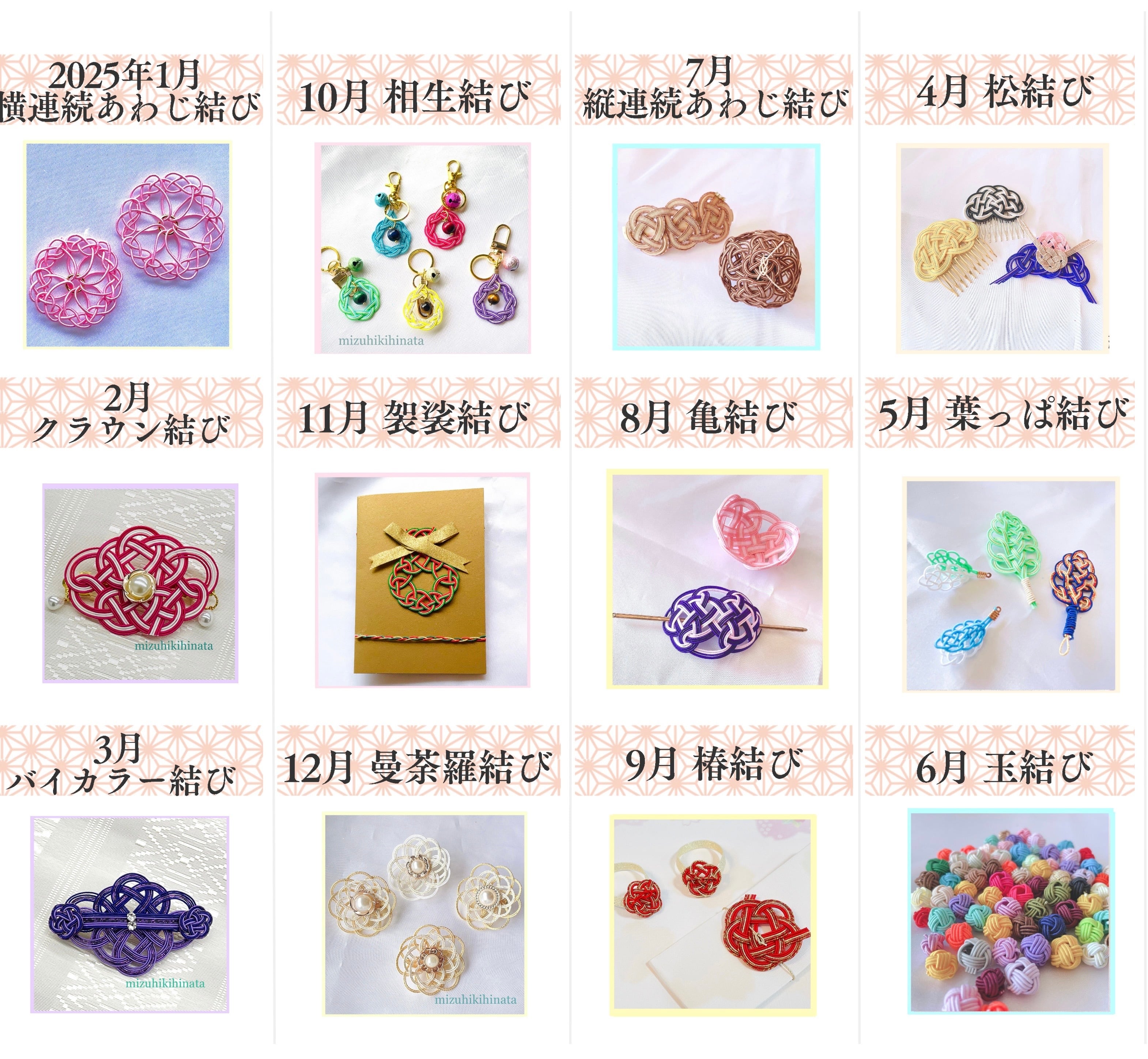 基本の結びから季節の飾りまで、見るだけでも心が整うような手仕事の時間を。